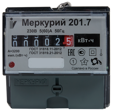 Счетчик электроэнергии Меркурий 201.7 используется для учета израсходованных ресурсов. Подлежит установке в закрытых помещениях, щитках или шкафах. Отличается простотой монтажа. Особенности: корпус сделан из пластика; дисплей закрывается с помощью полупрозрачной дверцы; количество фаз — одна.