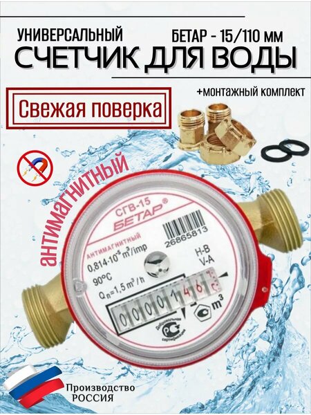 {"widgets":{"@card/UniversalPromoBadge":{"/content/page/fancyPage/defaultPage/universalPromoBadge":{"wrapperProps":{"margins":{"bottom":"3"}},"initialTime":1772082147955,"offerComposeId":"10326423281838892223"}}},"meta":{"/content/page/fancyPage/defaultPage/universalPromoBadge":{"name":"@card/UniversalPromoBadge"}},"collections":{"productServiceSnippets":{"10326423281838892223":{"productSnippet":{"snippetId":"document_id","type":"MODEL_CARD_LAYOUT","productPayload":{"snippetStyle":"NORMAL","title":{"value":"Счетчик воды СГВ 15 (110мм) Бетар Универсальный Антимагнитный с КМЧ"},"badges":{},"price":{"actualPrice":{"amount":{"intPart":431292,"currency":"UZS"},"style":"RED","type":"OTHER_DISCOUNT"},"oldPrice":{"amount":{"intPart":431292,"currency":"UZS"},"style":"STRIKETHROWED"}},"signals":{"customsFee":{"text":{"text":"Возможна пошлина"}}},"gallery":{"mediaItems":[{"picture":{"baseUrl":"https://avatars.mds.yandex.net/get-mpic/4590616/2a000001934978e182b0caf87945ffb21ce2/","width":900,"height":1200,"title":"Счетчик воды СГВ 15 (110мм) Бетар Универсальный Антимагнитный с КМЧ"},"type":"IMAGE"},{"picture":{"baseUrl":"https://avatars.mds.yandex.net/get-mpic/5235334/2a000001934978e3fc117d0170693ca9d424/","width":900,"height":1200,"title":"Счетчик воды СГВ 15 (110мм) Бетар Универсальный Антимагнитный с КМЧ"},"type":"IMAGE"},{"picture":{"baseUrl":"https://avatars.mds.yandex.net/get-mpic/5189780/2a000001934978e186dd88ef907022de246f/","width":900,"height":1200,"title":"Счетчик воды СГВ 15 (110мм) Бетар Универсальный Антимагнитный с КМЧ"},"type":"IMAGE"},{"picture":{"baseUrl":"https://avatars.mds.yandex.net/get-mpic/7501941/2a00000193495c473e2f78f3ed70e9663150/","width":900,"height":1200,"title":"Счетчик воды СГВ 15 (110мм) Бетар Универсальный Антимагнитный с КМЧ"},"type":"IMAGE"},{"picture":{"baseUrl":"https://avatars.mds.yandex.net/get-mpic/4120567/2a000001934978e18571f0e740ebd95057b8/","width":900,"height":1200,"title":"Счетчик воды СГВ 15 (110мм) Бетар Универсальный Антимагнитный с КМЧ"},"type":"IMAGE"},{"picture":{"baseUrl":"https://avatars.mds.yandex.net/get-mpic/3911679/2a000001934978e18230126b666c9203a1d0/","width":900,"height":1200,"title":"Счетчик воды СГВ 15 (110мм) Бетар Универсальный Антимагнитный с КМЧ"},"type":"IMAGE"},{"picture":{"baseUrl":"https://avatars.mds.yandex.net/get-mpic/3689399/2a000001934978e184fc1ef2577748ba7a01/","width":900,"height":1200,"title":"Счетчик воды СГВ 15 (110мм) Бетар Универсальный Антимагнитный с КМЧ"},"type":"IMAGE"},{"picture":{"baseUrl":"https://avatars.mds.yandex.net/get-mpic/12552957/2a000001934978e1875f6edc1ab5be10a979/","width":900,"height":1200,"title":"Счетчик воды СГВ 15 (110мм) Бетар Универсальный Антимагнитный с КМЧ"},"type":"IMAGE"},{"picture":{"baseUrl":"https://avatars.mds.yandex.net/get-mpic/5173454/2a000001934978e185c0f5d824ec86ca6598/","width":900,"height":1200,"title":"Счетчик воды СГВ 15 (110мм) Бетар Универсальный Антимагнитный с КМЧ"},"type":"IMAGE"},{"picture":{"baseUrl":"https://avatars.mds.yandex.net/get-mpic/5426148/2a00000193495c4dc2dfa2fbbd402cbe669a/","width":900,"height":1200,"title":"Счетчик воды СГВ 15 (110мм) Бетар Универсальный Антимагнитный с КМЧ"},"type":"IMAGE"}]},"rating":{"ratingValue":4.5,"ratingCount":2,"reviewsCount":1,"ratingCountStats":{"cnt1":0,"cnt2":0,"cnt3":0,"cnt4":1,"cnt5":1},"snippet":{"rating":"4.5","type":"product","description":"(2) · 15 купили","descriptionList":["(2)","15 купили"],"ratingStar":"4.5"}},"wishlistButton":{"businessId":918387,"mskuId":101445694138,"modelId":1437193736,"oskuId":102540069204,"offerId":"gxuaetVAB0FO-80JXuZGTQ"},"productRating":{"rating":"4.5","type":"product","description":"(2) · 15 купили","descriptionList":["(2)","15 купили"],"ratingStar":"4.5"}},"baobabPayload":{"type":"offer","wareId":"gxuaetVAB0FO-80JXuZGTQ","modelId":1437193736,"marketSku":"101445694138","snippet_type":"product","isExpress":false,"price":431292,"additionalPrices":[{"priceType":"withDiscount","priceValue":431292},{"priceType":"unknown","priceValue":431292}],"hid":7355200,"shopId":431782,"shopSku":"1460","supplierId":954276,"supplierType":3,"isUltima":false,"oskuId":102540069204,"snippetTheme":"GRID_FULL","stockCount":100,"rating":{"rating":"4.5","purchaseCount":"15","gradesCount":"2","ratingType":"product"},"promoLogJoinId":"4a083db758b5772b8070b2596139f370/1af909c76a0d964c","shopPromoIds":["price_increase_promo_954276"]},"themeType":"GRID_FULL"}}}}}