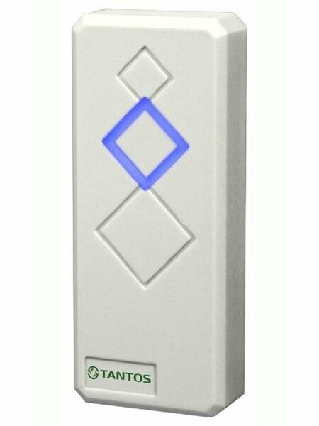 TANTOS TS-RDR-E White – бесконтактный считыватель карт формата EM-Marin (125кГц) предназначен для работы в составе систем контроля и управления доступом и совместим с любыми контроллерами, поддерживающими протокол Wiegand-26/34. особенности: - Доступная цена - Компактные размеры технические характеристики: Рабочая частота: 125 кГц Тип карт: EM-marine Дальность считывания: 50 - 100 мм Выходной протокол: Wiegand-26/34 Рабочее напряжение: 12 В Потребление: не более 80 мА Индикация: звуковая и световая 2-цветная (синий + зелёный) Рабочая температура: -25.+60°С Рабочая влажность: 10 – 90% Размеры: 102 х 43 х 16 мм Материал корпуса: пластик Цвет корпуса: белый
