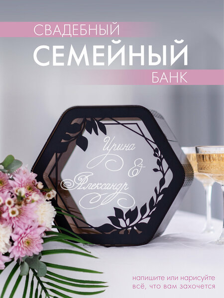 Семейный банк CONEST Данный Семейный банк является отличным решением для подарочных конвертов на свадьбу и станет гармоничным дополнением интерьера вашего дома после торжества! Преимущества нашего Семейного банка - Копилка имеет размеры 25х23х16 см, что делает её вместительной, но при этом сохраняет компактность. - Дизайн банка и уникальность позволяют использовать его не только как свадебную казну, но и как копилку для разных праздников — крестины, гендер пати, день рождения. - Меловой маркер, идущий в комплекте позволит с легкостью создать индивидуальный дизайн для особых праздников! Нарисуйте на стекле рисунок, напишите имена, дату или дорогие сердцу слова, которые украсят Ваше торжество и поднимут настроение. - Этот прочный банк сделан из лхдф и прозрачного акрилового стекла. Поставляется в разобранном виде и надежной упаковке. Содержимое можно достать через легко открывающуюся боковую стенку. Подарок на любой случай Семейный банк CONEST — это отличный подарок, с помощью которого можно выразить искренние чувства, и оставить надолго теплые воспоминания ! Спасибо, что выбираете нас! С любовью к покупателям, команда CONEST!
