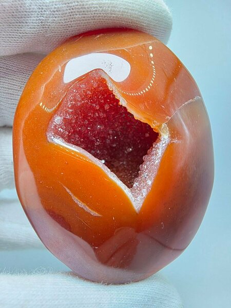 Булька из сердолика с жеодой кварца. Размер 54х44х22 мм. Вес 66 г. Сердолик – это разновидность халцедона, имеющая окраску от золотисто-желтого до оранжево-красного цвета. Является ценным ювелирно-поделочным камнем. Разновидности: Сардер – густоокрашенный с преобладающим каштаново-бурым оттенком, Карнеол – насыщенно-красный, Сардоникс (сердоликовый оникс) – камень с чередующимися слоями ярко-красной или красно-желтой и молочно-белой окрасок. Характеристики: Твёрдость по шкале Мооса: 6,5 условных единиц. Плотность: 2,6 г/см. Окраска обусловлена примесями природных оксидов и гидроксидов железа. Встречается как однородная, так и зональная окраска (концентрически-зональная, реже плоскопараллельно-зональная). Происхождение и месторождения: обычно заполняет трещины и миндалины в эффузивных породах. Накапливается в виде гальки в корах выветривания и россыпях. Главные промышленные месторождения находятся в: Индии (Деканское плоскогорье), Бразилии (штат Минас-Жерайс), Уругвае, России (Восточная Сибирь, Дальний Восток, Чукотка). Используется для изготовления бус и украшений, вставок в кольца и броши. Сардоникс применяется в глиптике. В древности из сердолика изготавливали цилиндрические и круглые печати. Фигурки скарабеев. Амулеты. Особенно ценятся однородные, неяснополосчатые полупрозрачные или просвечивающие камни ярко-красного и оранжевого цвета. В Древнем Египте сердолик высоко ценился и использовался для создания различных ритуальных предметов, включая амулеты и украшения для фараонов. Сердолик считается одним из самых мощных любовных камней. В древности его называли “камнем богини Изиды” и “камнем, в котором застыл закат солнца”. Основные магические свойства: Способствует возникновению устойчивых чувств. Защищает от любовных чар. Олицетворяет семейное счастье. Помогает найти родственную душу. Развивает интуицию. Усиливает проницательность. Способствует духовному очищению. Направляет жизненные силы в нужное русло. Оберегает от тёмной магии. Помогает в принятии важных решений. Влияние на знаки зодиака: Подходит: знакам земной и водной стихии, особенно благоприятен для: Тельцов (помогает найти любовь), Раков (развивает интуицию), Козерогов (придаёт уверенность). Не рекомендуется Скорпионам. Древние славяне называли сердолик “каднос” или “смазень”. Считалось, что амулет с этим минералом защищает саму суть человеческой жизни. Важные рекомендации: Наибольшую силу камень проявляет в качестве подарка. Очищать камень рекомендуется слабым мыльным раствором. Хранить следует отдельно от других камней. Сердолик считается одним из самых благоприятных камней для создания гармоничных отношений и достижения жизненного успеха. Его энергия помогает своему владельцу раскрыть лучшие качества и достичь поставленных целей. Камень натуральный, поэтому может иметь естественные трещинки, включения, неровности поверхности, рисунка, цвета, что подтверждает и подчеркивает его природное происхождение. Цвет на фото может несколько отличаться от цвета в реальности за счет разных настроек мониторов и особенностей освещения при фотографировании. Вы приобретаете именно тот образец, что на фотографии.