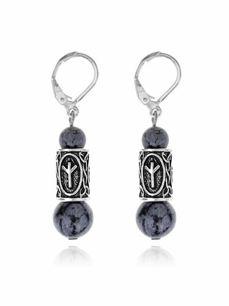 Вербица. Украшения. Серьги амулеты с руной Альгиз (Защита от зла, сила, самоконтроль), обсидиан. Серьги – не только роскошное украшение, они могут служить как амулет, который привлекает удачу, носится на счастье. Серьги – амулет придают таинственный вид усиливают привлекательность. Рунический амулет "Альгиз" используется для защиты от любого зла и внешнего воздействия. Предупреждает об опасности, даёт силу и покровительство, помогает контролировать себя и свои эмоции. Обсидиан делает все тайное явным, помогает увидеть все в истинном свете, найти истину и правильный путь в жизни, способствует исцелению души и разума, восстановлению от забытых психических травм. Напоминает душе о её предназначении, помогает работать над собой, расти и развиваться. Оберегает от негативной энергии, дает уверенность в собственных силах и стремление помогать другим. Натуральный камень: снежный обсидиан. Материал рунических бусин и швенз: бижутерный сплав с покрытием под серебро.