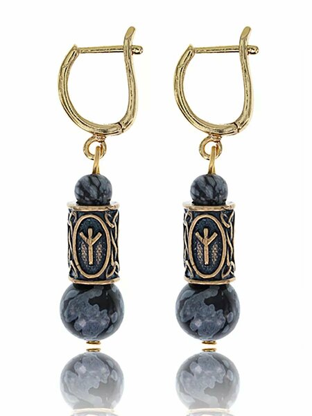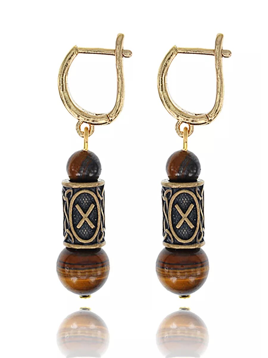 Вербица. Серьги с натуральным камнем. Рунический амулет "Альгиз". Натуральный камень: обсидиан. Высота серёг: 45 мм. Размеры бусин с рунами: 12х8 мм. Диаметр бусин из натурального камня: 6 и 10 мм. Материал рунических бусин: латунь. Материал швенз: бижутерный сплав с гипоаллергенным покрытием. Тип замка: английский. Серьги – не только роскошное украшение, но могут служить как амулет, который привлекает удачу, носится на счастье. Серьги - амулет придают таинственный вид, усиливают привлекательность. Придают женщине, носящей их, женскую силу, красоту и загадочность. Рунический амулет "Альгиз" используется для защиты от любого зла и внешнего воздействия. Предупреждает об опасности, даёт силу и покровительство, помогает контролировать себя и свои эмоции. Обсидиан делает все тайное явным, помогает увидеть все в истинном свете, найти истину и правильный путь в жизни, способствует исцелению души и разума, восстановлению от забытых психических травм. Напоминает душе о её предназначении, помогает работать над собой, расти и развиваться. Оберегает от негативной энергии, дает уверенность в собственных силах и стремление помогать другим. Серьги с натуральным камнем помогут заглянуть вглубь себя, сосредоточиться, понять свои цели в жизни. Серьги - амулеты с руническими бусинами, натуральными камнями и качественными швензами с английским замком станут замечательным подарком для любимых женщин. Обратите внимание: натуральные камни как правило имеют неоднородную структуру, могут включать фракции, включения разных цветов, а потому отличаться от изображённых на фотографиях по оттенку и структуре. Наличие неоднородностей только подтверждает натуральность камня. Можно сказать, что каждый натуральный камень по-своему уникален. За это они и ценятся. Отличие камня от фото браком не является!
