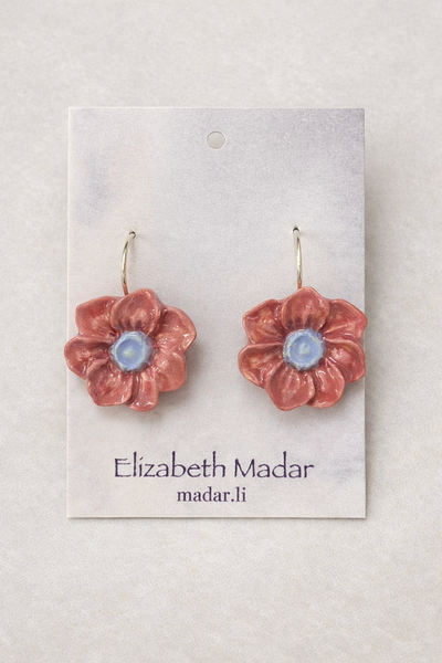 Пара аккуратных серёжек в виде цветов, украшения изготовлены вручную дизайнером-керамистом Elizabeth Madar из Санкт-Петербурга. Сережки выполнены из керамики и покрыты глянцевой глазурью. Миниатюрные сережки для любителя оригинальных и необычных аксессуаров подчеркнет вашу индивидуальность. Приобрести серьги ручной работы можно легко через наш интернет-магазин. Мы гарантируем качественную упаковку и доставляем товары по всей стране. Жителям и гостям Санкт-Петербурга мы предлагаем посетить наш магазин в центре города, чтобы оценить наши эксклюзивные товары лично.