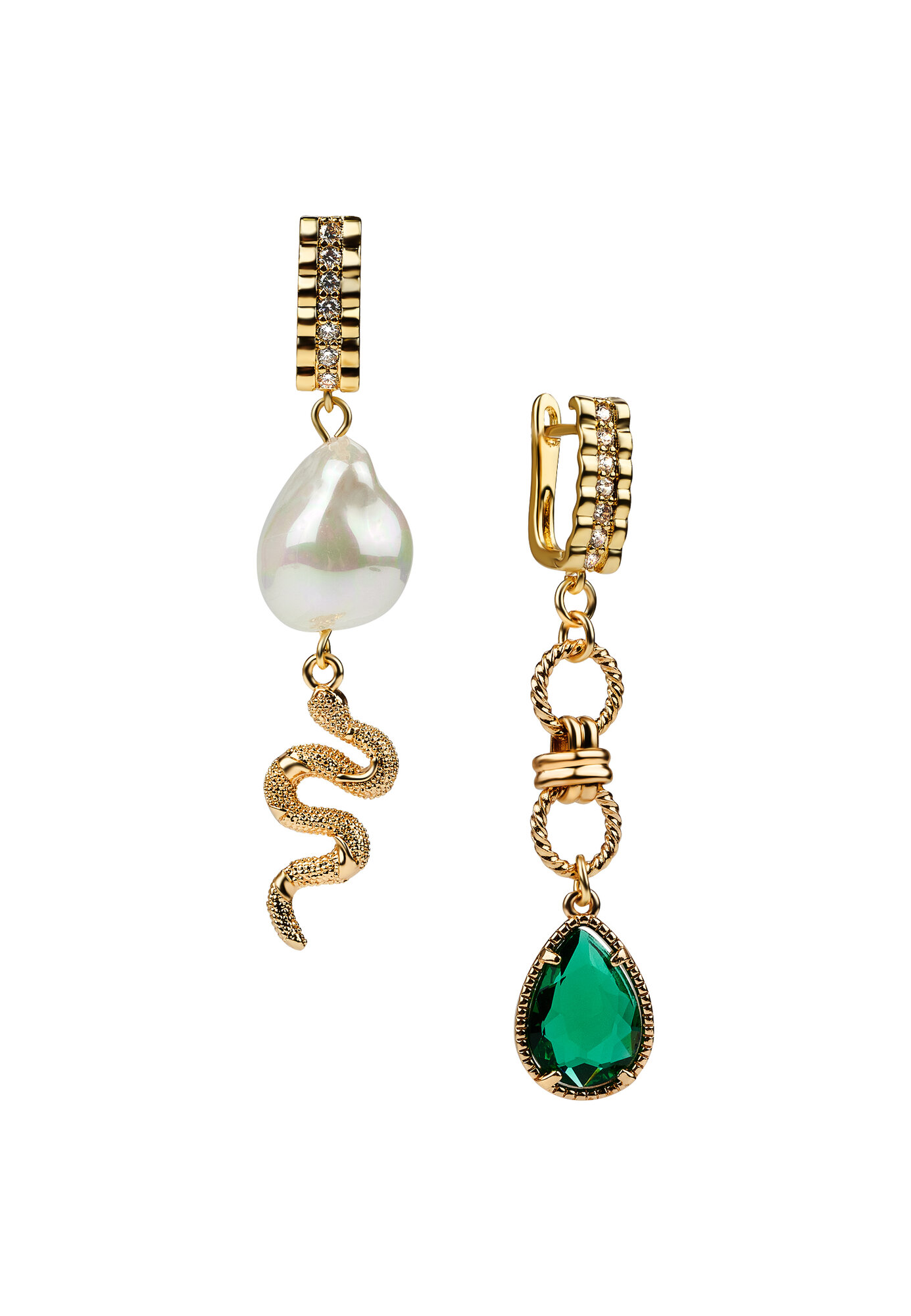 Дизайнерские серьги из коллекции "My Poison" — эффектное украшение в асимметричном стиле, созданное для тех, кто выбирает дерзкий и выразительный образ. Подвеска в виде изящной змеи символизирует силу, независимость и внутреннюю энергию, а сочетание материалов придаёт украшению утончённость и глубину. В оформлении использованы жемчуг майорка, сверкающий циркон и ювелирное стекло нежного голубого оттенка, которое создаёт акцентный цветовой штрих и визуальную лёгкость. Длина серёг — 6 см, вес каждой — 7 граммов, что делает их комфортными для длительной носки и при этом достаточно заметными. Фурнитура выполнена из гипоаллергенного металлического сплава с прочным гальваническим покрытием золотом, устойчивым к износу и потускнению. Эти серьги идеально подойдут для вечерних выходов, особых мероприятий или как эффектное дополнение к базовому гардеробу. Асимметричные серьги с голубым стеклом и мотивом змеи — выбор женщин с характером и безупречным вкусом.