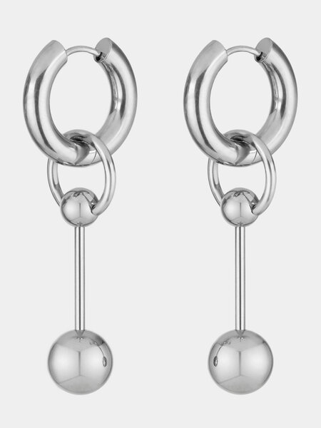Массивные серьги-кольца с футуристичными подвесными элементами в виде стальных сфер разного диаметра, соединенных металлическим стержнем. Броское украшение, которое станет ярким акцентом повседневной стилизации. Материал: сталь Внешний диаметр основ: 20 мм Толщина основ: 4 мм Диаметр сфер: 6 и 10 мм Вес серег (комплект): 20 гр Тип замка: конго В целях сохранности украшения - протирать сухой салфеткой после использования. Избегайте попадания бытовой химии на изделия. Украшение поставляется в фирменной упаковке из плотного картона с атласным мешком-пыльником, в котором можно хранить изделие на протяжении всего срока эксплуатации.