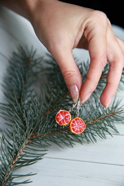 Серьги с грейпфрутом из полимерной глины ручной работы Погрузитесь в мир ярких эмоций с нашими уникальными серьгами, выполненными из полимерной глины в виде сочных грейпфрутов! Эти аксессуары идеально подойдут для тех, кто хочет добавить в свой образ немного солнечного лета и фруктовой свежести. Каждая пара серёг создаётся вручную, а значит, вы получаете поистине эксклюзивный товар. Мастера уделяют внимание каждой детали: от текстуры кожуры до яркости мякоти, что делает серьги не только красивыми, но и реалистичными. Лёгкий вес и удобная застёжка обеспечивают комфорт на протяжении всего дня. Эти серьги станут отличным дополнением как для повседневного, так и для вечернего образа. Они отлично подойдут для лета, отпусков на море или в качестве оригинального подарка для друзей и близких. Не упустите возможность добавить в свою коллекцию аксессуаров нотку фруктового настроения!