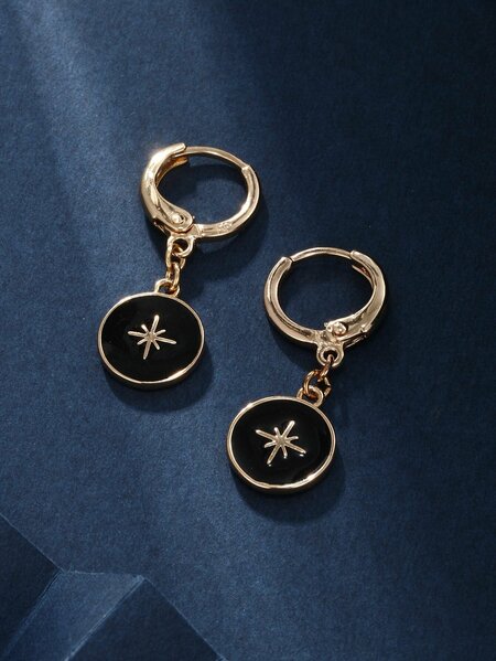 Серьги бижутерия под золото XUPING JEWELRY. Покрытие золотом, гальваническим методом. Покрытие не боится воды, не темнеет, не вызывает аллергии. Размер: длина 25 мм, диаметр черного круга 9 мм. Застежка конго.