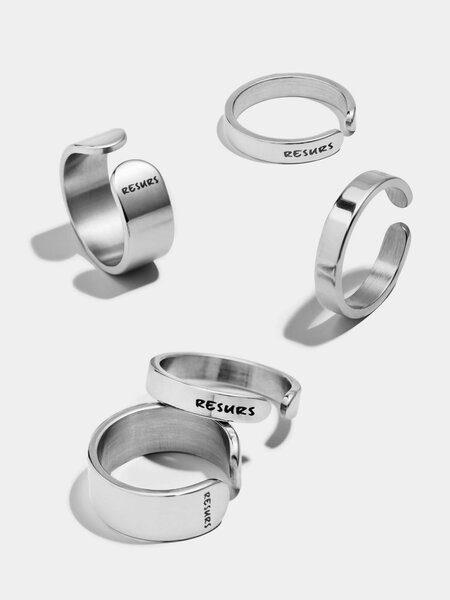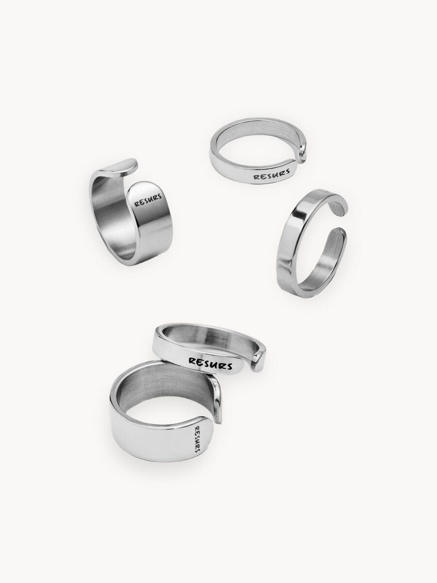 Сет из пяти плоских колец разной ширины. Сочетание зеркального блеска и холодного металла. Каждое из колец может быть как самостоятельным аксессуаром, так и частью сложной стилизации. Материал: нержавеющая сталь Размер колец: 17 Ширина колец: 4 и 8 мм *все 5 колец в сете одного размера В целях сохранности украшения - протирать сухой салфеткой после использования. Избегайте попадания бытовой химии на изделия. Украшение поставляется в фирменной упаковке из плотного картона с атласным мешком-пыльником, в котором можно хранить изделие на протяжении всего срока эксплуатации.