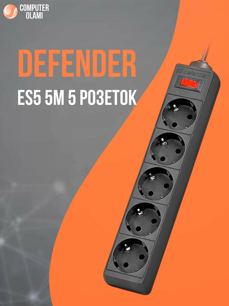 Сетевой фильтр Defender ES5 с длинным кабелем 5 м для безопасного