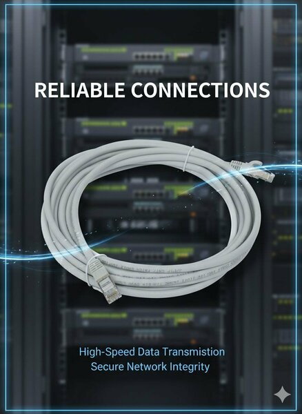Скорость передачи данных: до 10 Гбит/с (10 Gigabit Ethernet). Рабочая частота: до 600 МГц. Конструкция кабеля: Каждая пара проводов экранирована отдельно (STP – shielded twisted pair). Это снижает шумы и улучшает качество сигнала. Обычно кабели CAT 7 имеют такие типы экранирования, как S/FTP или F/UTP: S/FTP: каждая пара проводов покрыта отдельной фольгой + внешнее фольгированное покрытие. F/UTP: внешнее фольгированное покрытие, но каждая пара проводов не экранирована отдельно. . Длина кабеля: Максимальная длина передачи сигнала с кабелем CAT 7 – 100 метров. Для работы на скорости 10 Гбит/с рекомендуется длина до 50 метров. Разъёмы: Обычно используется разъём RJ45. Некоторые кабели CAT 7 совместимы с разъёмами GG45 или TERA. Применение: Высокоскоростные LAN-сети. Серверные помещения, дата-центры. Передача видео, аудио и больших объёмов данных. Преимущества: Устойчивость к шумам и электромагнитным помехам (EMI). Высокая скорость передачи и стабильный сигнал. Совместимость с будущими высокоскоростными сетями. 5 м