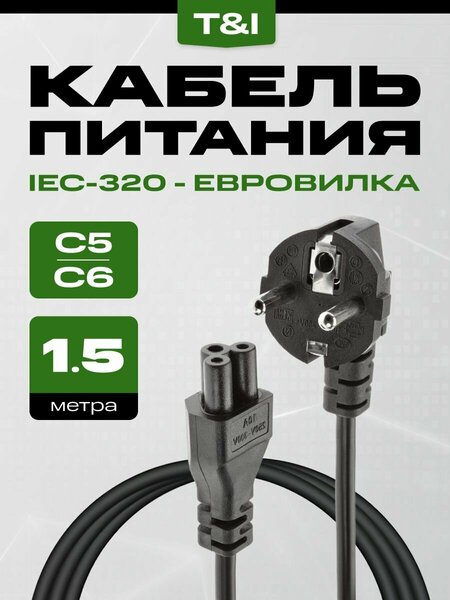 Сетевой кабель питания 1,5 м; шнур для ноутбука; IEC 320 C5 евро-вилка
