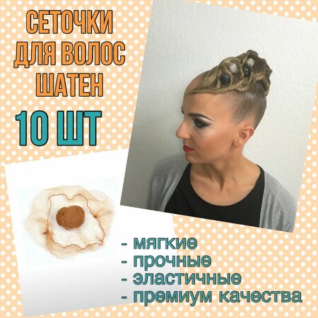 Набор из 10 высококачественных, мягких, эластичных, тонких, легких, незаметных сеточек для волос прекрасно подходит для создания как простых, но аккуратных пучков, так и для фантазийных, фигурных причесок. Сеточки прекрасно растягивается, что позволяет их использовать на волосах любой длины. Каждая сеточка практически не заметна на волосах, при этом крепкая и мягкая на ощупь. Идеальна для создания причёсок для стюардесс, танцоров бальных танцев, балета, гимнасток, фигуристок и всех тех, кому необходим аккуратный гладкий пучок без торчащих волос. Также сеточку можно использовать на ночь для сохранения прически.