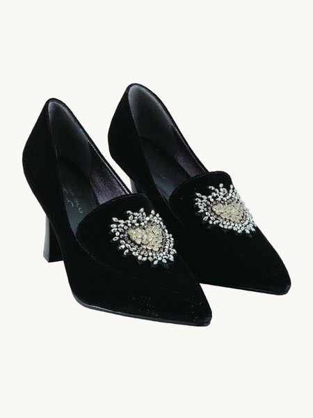 Туфли выполнены из мягкого бархатного материала, что обеспечивает комфорт при носке и добавляет изысканности внешнему виду. Черный цвет делает их универсальными и легкими в сочетании с разной одеждой, что позволяет использовать их в различных ситуациях.
