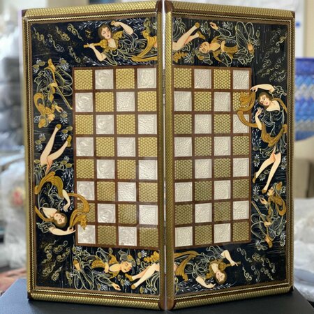 Шахматы-нарды "Хатам" представляют собой эксклюзивный набор, состоящий из трех игр: шахматы, шашки и нарды. Выполненные в технике Хатам Кари Исфахан, эти нарды и шахматы являются произведением искусства, которое станет отличным подарком для любителей настольных игр. Техника Хатам Кари Исфахан, использованная в создании этого набора, представляет собой древнюю персидскую технику инкрустации по дереву. Основа может быть выполнена из различных пород дерева, таких как апельсиновое, бетель, эбеновое, орех, кипарис, ююба и сосна. Поверхность покрывается мозаикой со сложным геометрическим узором в виде шестигранных треугольников. Фигуры для игры выполнены из натурального дерева и металла, что придает им особый шарм и долговечность. В комплект входят фишки для игры в нарды, кожаный чемодан и тканевый чехол. Этот набор предназначен для взрослой и детской аудитории и станет отличным инструментом для развития тактического и стратегического мышления. Шахматы-нарды "Хатам" - это не просто набор для игры, это произведение искусства, которое будет радовать глаз и приносить удовольствие от процесса игры.