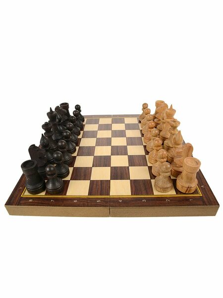 Шахматы с фигурами для домашнего использования. Удобно хранить на книжной полке. Деревянные шахматные фигуры изготовлены из массива. Размер доски 29х29см. Размер клетки 32мм. Высота короля 75 мм, основание 28 мм. Высота пешки 42 мм, основание 25 мм.