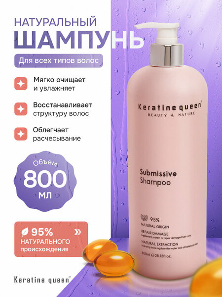 Шампунь Keratine Queen создан для тех, кто стремится к здоровым, густым и блестящим волосам. Формула с биотином и натуральными экстрактами укрепляет корни, снижает выпадение и стимулирует рост волос. Уже после первого применения волосы становятся мягче, шелковистее и приобретают естественный блеск. Шампунь глубоко очищает кожу головы, нормализует баланс себума и увлажняет волосяные фолликулы. Не содержит сульфатов и агрессивных компонентов. Подходит для всех типов волос, включая окрашенные. Что в комплекте: 1 флакон шампуня 800 мл Как использовать: Нанести на влажные волосы, помассировать кожу головы 2–3 минуты, затем смыть тёплой водой. Для максимального эффекта использовать регулярно. Восстанавливает блеск и повышает эластичность волос. Разглаживает кудри, придавая им яркий блеск. Этот продукт содержит биотин, который не только в достаточном количестве питает волосы, но и улучшает кровообращение в коже, способствует росту волос и предотвращает их выпадение. Глубоко очищает волосы и кожу головы, защищая ее от повреждений и делая волосы эластичными и пышными. Содержит растительный экстракт и другие питательные экстракты, которые глубоко очищают и увлажняют волосяные фолликулы и корни волос, одновременно повышая их мягкость. Делает волосы здоровыми, прочными, яркими и блестящими, эффективно борется с перхотью и жирностью, способствует их росту.