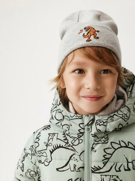 Детская трикотажная двухслойная шапка в цвете серый меланж - прекрасное дополнение гардероба ребенка. Нашивка на отвороте в виде динозавра придает модели яркий акцент, радуя ребенка. Рекомендованный температурный режим от +5 до +15°C, но ощущения тепла и холода зависят от индивидуального теплообмена ребенка. Шапка в сером цвете станет стильным и практичным дополнением к гардеробу для прогулок в прохладную погоду.
