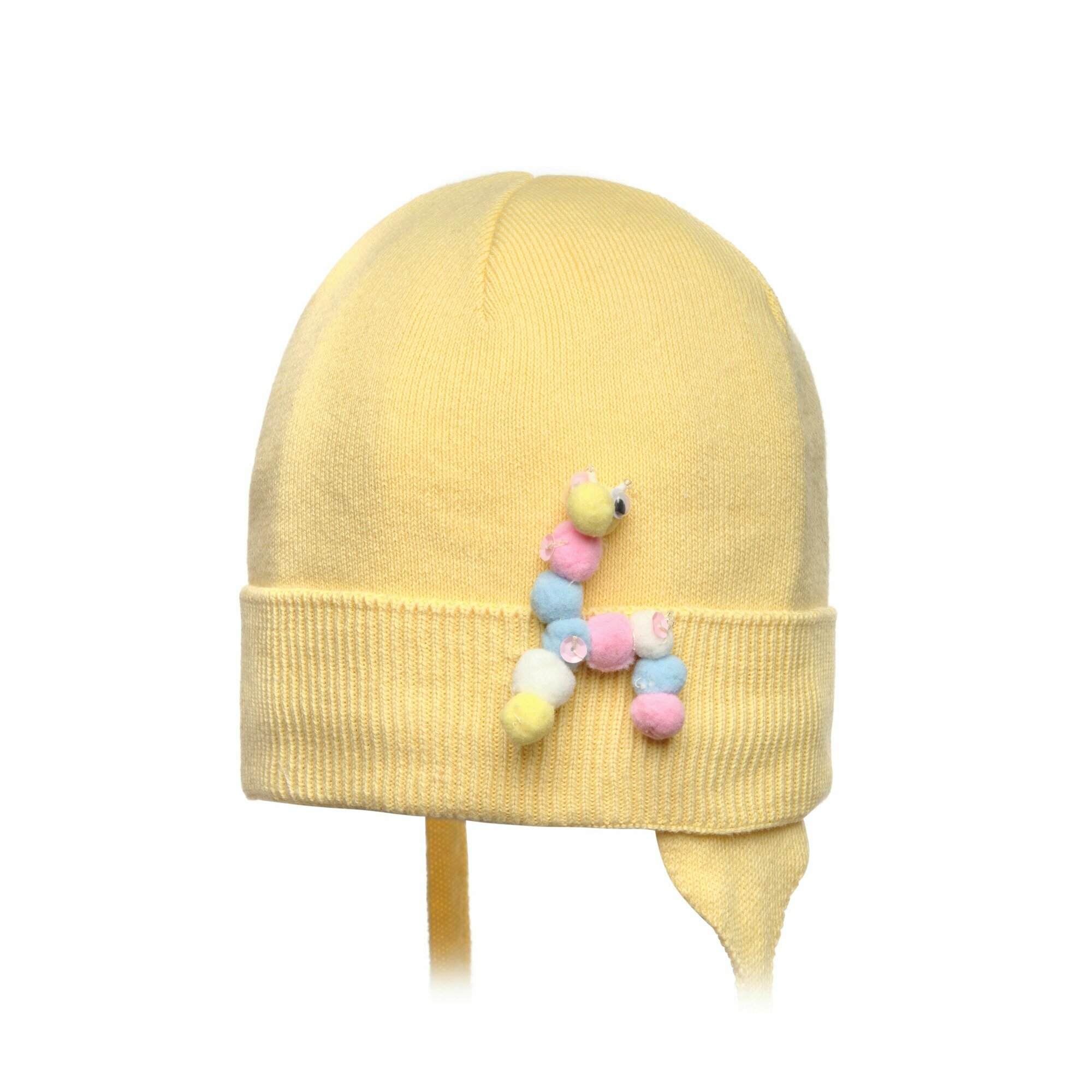 Шапка на подкладке, с кроеной макушкой, отворотом , притачными ушками и завязками. Декор: жираф