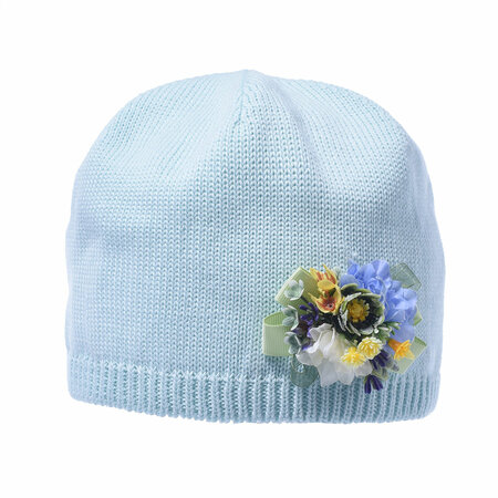Легкая весенняя хлопковая шапка с вывязанной макушкой. Декор: нежный букет полевых цветов из искусственного шелка