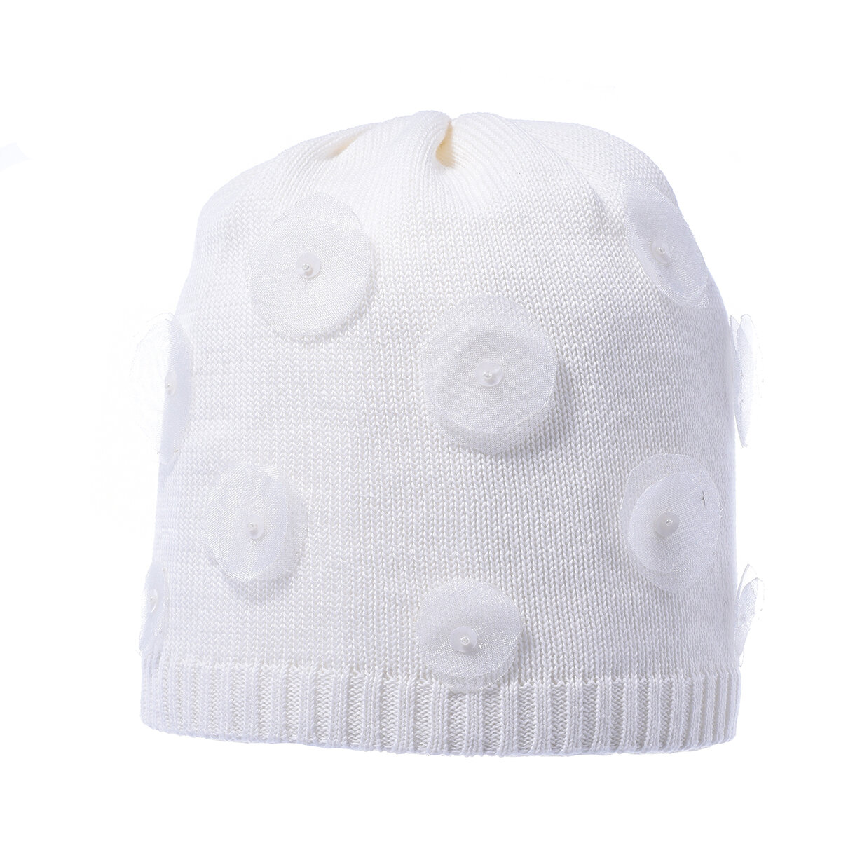 Легкая весенняя хлопковая шапка с макушкой на стяге. Декор: росшив цветами из органзы с сердцевиной из пайетки