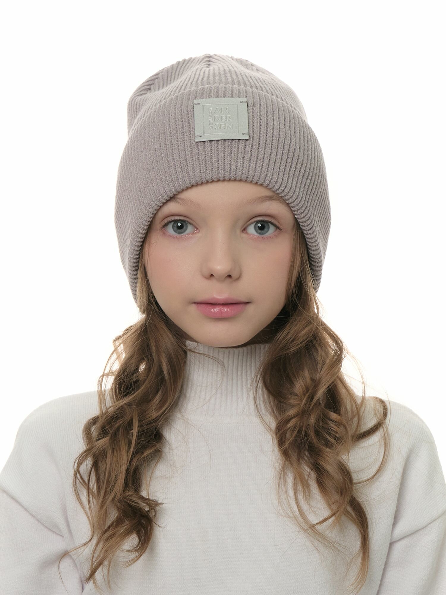 Шапка с кроеной макушкой, с отворотом. Декор: шильд серый квадрат "Andersen".