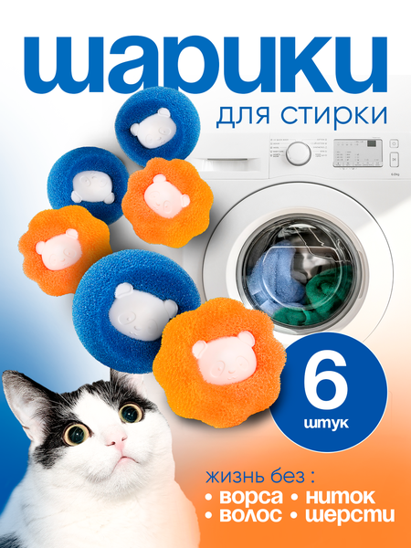 Шарики мячики губки для стирки и удаления шерсти и волос 6 штук