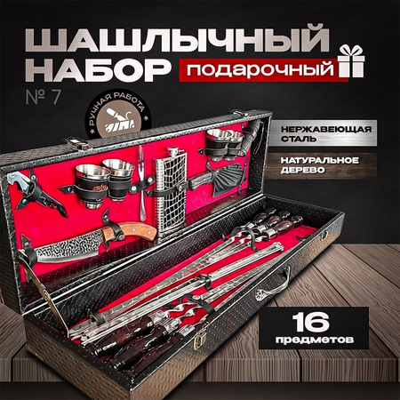 {"widgets":{"@card/UniversalPromoBadge":{"/content/page/fancyPage/defaultPage/universalPromoBadge":{"wrapperProps":{"margins":{"bottom":"3"}},"initialTime":1772148144529,"offerComposeId":"7170489434931474817"}}},"meta":{"/content/page/fancyPage/defaultPage/universalPromoBadge":{"name":"@card/UniversalPromoBadge"}},"collections":{"productServiceSnippets":{"7170489434931474817":{"productSnippet":{"snippetId":"document_id","type":"MODEL_CARD_LAYOUT","productPayload":{"snippetStyle":"NORMAL","title":{"value":"Шашлычный набор в подарочном кейсе №7"},"badges":{},"price":{"actualPrice":{"amount":{"intPart":3326210,"currency":"UZS"},"style":"RED","type":"OTHER_DISCOUNT"},"oldPrice":{"amount":{"intPart":3782024,"currency":"UZS"},"style":"STRIKETHROWED"}},"signals":{"customsFee":{"text":{"text":"Возможна пошлина"}},"lastStock":{"text":{"text":"Осталась 1 шт"},"level":"CRITICAL"}},"gallery":{"mediaItems":[{"picture":{"baseUrl":"https://avatars.mds.yandex.net/get-mpic/17407955/2a0000019aefc28432f7b45eff39af239993/","width":1200,"height":1200,"title":"Шашлычный набор в подарочном кейсе №7"},"type":"IMAGE"},{"picture":{"baseUrl":"https://avatars.mds.yandex.net/get-mpic/5270077/2a0000019aefc2843293ea67d7d0d368e1a0/","width":1200,"height":1200,"title":"Шашлычный набор в подарочном кейсе №7"},"type":"IMAGE"},{"picture":{"baseUrl":"https://avatars.mds.yandex.net/get-mpic/5213758/2a00000192de83b3b6775cf8f2ebb92295a9/","width":1200,"height":1200,"title":"Шашлычный набор в подарочном кейсе №7"},"type":"IMAGE"},{"picture":{"baseUrl":"https://avatars.mds.yandex.net/get-mpic/10206808/2a00000192de8c4c9722f1ce9bedf9612914/","width":1200,"height":1200,"title":"Шашлычный набор в подарочном кейсе №7"},"type":"IMAGE"}]},"rating":{"ratingValue":5,"ratingCount":3,"reviewsCount":2,"ratingCountStats":{"cnt1":0,"cnt2":0,"cnt3":0,"cnt4":0,"cnt5":3},"snippet":{"rating":"5.0","type":"product","description":"(3) · 6 купили","descriptionList":["(3)","6 купили"],"ratingStar":"5"}},"wishlistButton":{"businessId":1354396,"mskuId":101465201058,"modelId":1450924791,"oskuId":101465201058,"offerId":"fBTXS1xp-0Jz9C2-dKlBsg"},"productRating":{"rating":"5.0","type":"product","description":"(3) · 6 купили","descriptionList":["(3)","6 купили"],"ratingStar":"5"}},"baobabPayload":{"type":"offer","wareId":"fBTXS1xp-0Jz9C2-dKlBsg","modelId":1450924791,"marketSku":"101465201058","snippet_type":"product","isExpress":false,"price":3782024,"additionalPrices":[{"priceType":"withDiscount","priceValue":3326210},{"priceType":"unknown","priceValue":3782024}],"hid":60451589,"shopId":431782,"shopSku":"444402","supplierId":45885103,"supplierType":3,"isUltima":false,"oskuId":101465201058,"snippetTheme":"GRID_FULL","stockCount":1,"rating":{"rating":"5.0","purchaseCount":"6","gradesCount":"3","ratingType":"product"},"promoLogJoinId":"7b9acf3f4cdd60646e5e3152c5c48829/88dffe1026d7a4c0","shopPromoIds":["cf_bp_1000325","price_increase_promo_45885103"]},"themeType":"GRID_FULL"}}}}}