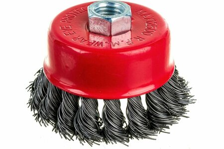 Щетка для УШМ М14 жесткая чашка D 75 мм Корпус: сталь. Чашка: сталь. Посадочное отверстие: 22,2 мм. Тип посадки: гайка М14. Диаметр: 75 мм. Работа по основаниям: металл. Предназначена для грубой обработки и зачистки ровных металлических оснований. Эффективно удаляет старое лакокрасочное покрытие, ржавчину и сильные загрязнения.