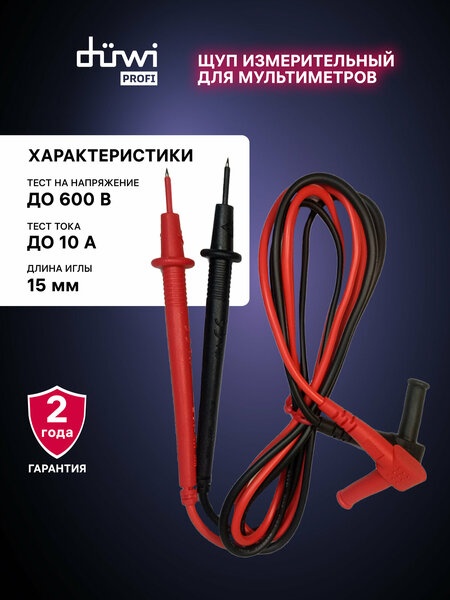 Универсальные разъемы подходят для большинства моделей цифровых мультиметров и приборов. Наши щупы изготовлены из высококачественных материалов, обеспечивающих долговечность и точность измерений. Они имеют удобные и эргономичные рукоятки, обеспечивающие комфортную работу. Основные характеристики: Назначение: для измерения напряжения Постоянное напряжение: до 600В Постоянный ток: до 10А Размер: длина 714 мм, длина рукояти 74мм, длина иглы 15мм