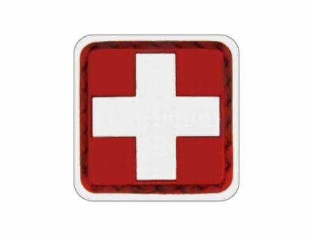 Шеврон ПВХ с велкро "Медик" 30х30мм белый на красном