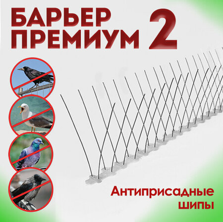 Шипы противоприсадные «барьер-премиум 2»- экономичная И эффективная защита от пернатых. Что это? Простое, но незаменимое приспособление для защиты от птиц. Не позволяет птицам садиться, обустраивать гнезда, кучковаться или испражняться на подоконники, декоративные элементы фасадов зданий, крыши домов, уличные фонари, камеры видеонаблюдения, внешние блоки кондиционеров, рекламные вывески и. т. д. После установки шипов птицы некоторое время могут подлетать к привычным местам, но из-за невозможности туда сесть в итоге они навсегда покинут защищенный объект. У птиц привыкания к шипам (в отличии от других возможных средств) не происходит, поэтому защита противоприсадными шипами - это защита раз и навсегда! Как работает: На основании из специального гибкого пластика, размещены в три ряда металлические шипы. Шипы направлены в обе стороны. Они сделаны из прочной пружинной стали, которая достаточно жесткая, чтобы выдержать вес любой птицы и сильно не прогибаться. После того, как птица перестаёт пытаться сесть на шипы, они мгновенно возвращаются в свою исходную форму. Из-за полупрозрачного основания шипы почти не видны со стороны улицы и не портят внешний вид фасада. Как ими пользоваться: Шипы можно установить с одним из следующих типов крепления: клей — на пластик, гвозди — на дерево, саморезы — на камень. При необходимости конструкцию можно согнуть (радиус закругления — не менее 10 см). Одна секция способна закрыть собой от птиц участок 50х22 см. Способ соединения секций по принципу пазла позволит защитить поверхность любой длинны просто установкой дополнительных секций. Можно даже создать защитный периметр любой подходящей формы и размеров. Особенности и преимущества противоприсадных шипов «Барьер-Премиум 2»: Удлиненная высота шипов - 13 см, позволяет защищать поверхность от любых видов птиц; Увеличенное количество игл на секции - 40 шт; Защита участка 50х22 см; Гибкое основание позволяет защищать даже неровные поверхности; Гибкие шипы не дают возможность птицам сесть на них; Отсутствие необходимости обслуживания; Простота установки; Почти полная незаметность благодаря прозрачному основанию.