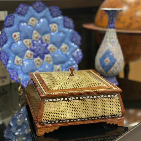 Шкатулка "Хатам" от Персидского базара - это изысканный аксессуар для хранения и демонстрации, выполненный в древней персидской технике инкрустации по дереву. Поверхность шкатулки покрыта редчайшим видом мозаики со сложным геометрическим узором в виде шестигранных треугольников. Это придает ей элегантный и стильный вид, который будет радовать глаз на протяжении многих лет. Шкатулка выполнена в бежевом и коричневом цветах, что делает ее достаточно вместительной для хранения различных предметов. Размеры шкатулки составляют 9х21х21 см, что позволяет разместить в ней все необходимые вещи. Дополнительным материалом для техники Хатам служат кость (верблюжья, слоновая и коровья) и металлические нити (2 — 3 мм толщиной): медь, золото или серебро. Это придает изделию особый шарм и делает его уникальным. Выбирая шкатулку "Хатам", вы получаете не только стильный и функциональный аксессуар, но и произведение искусства, которое будет радовать вас своим внешним видом и функциональностью на протяжении многих лет.