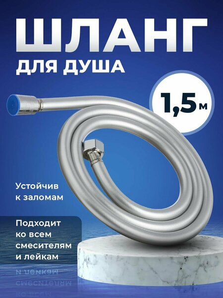 Прочный шланг для душа подходит для всех стандартных смесителей в ванной. Он изготовлен из ПВХ материала, имеет усиленную оплетку, термостойкий и антикоррозийный слой. Гайка и штуцер выполнены из латуни. Душевой шланг достаточно гибкий, устойчив к заломам, трещинам и вздутию. Он выдерживает сильное давление до 5 бар, а надежное соединение исключает разрыв слоя и появление трещин. Силиконовый шланг для воды устанавливается за 2 минуты: подсоедините конусообразную гайку к лейке, а плоскую гайку к смесителю — готово! Никаких дополнительных инструментов для установки не требуется. В комплекте идут 2 прокладки, размерами 19 х 10 мм, 18 х 8 мм. Они нужны для того, чтобы надежно прикрутить гайки к смесителю и лейке и исключить риск протечек. Короткий шланг для сантехники имеет длину 1,5 м. Если вы или кто-то из вашей семьи выше 175 см, то лучше выбрать наш второй вариант, длиной 2 м. Обе длины — 150 и 200 см комфортны для гигиенического домашнего использования. Дополните свою ванную комнату стильным аксессуаром в хромированном цвете – он подойдет к любому дизайну.
