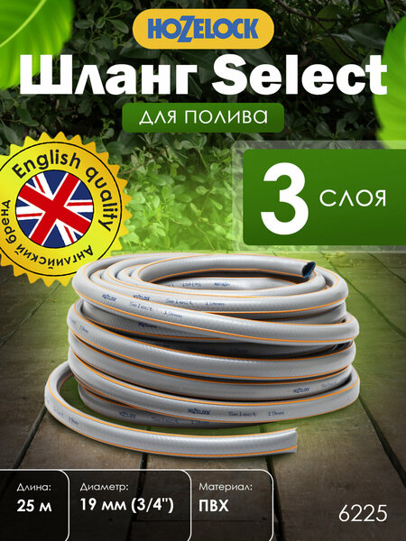 HoZelock SELECT 6225 универсальный садовый шланг 19 мм 25 м, износостойкий