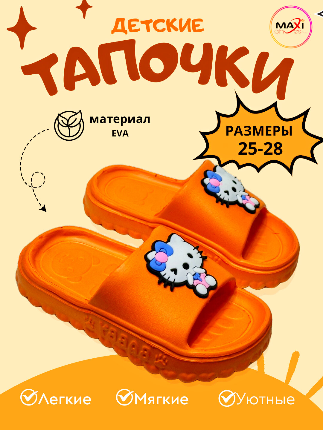 Шлёпанцы для девочек и мальчиков от MAXi SHOES - это удобная и стильная обувь, которая станет отличным дополнением к гардеробу вашего ребенка. Шлёпанцы изготовлены из высококачественного материала ЭВА, который обеспечивает долговечность и комфорт при носке. Этот материал легкий, гибкий и гипоаллергенный, что делает обувь приятной на ощупь и безопасной для детской кожи. Всесезонная модель шлёпанцев подходит для ношения в любое время года. Они обеспечивают комфорт и тепло в прохладную погоду, а также позволяют ногам дышать в теплую. MAXi SHOES заботится о здоровье и комфорте своих маленьких клиентов, поэтому предлагает качественную и безопасную обувь.