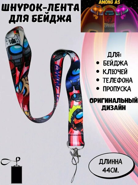 Наиболее распространенным аксессуаром для ношения электронного пропуска или бейджа является лента. Шнур для бейджа, выполненный по мотивам всем известной видеоигры "Among As" . Подойдет для любого бейджа. Имеет надежный тип крепления. Вес - 2 грамма Длинна - 46*2 см Материал - Текстиль