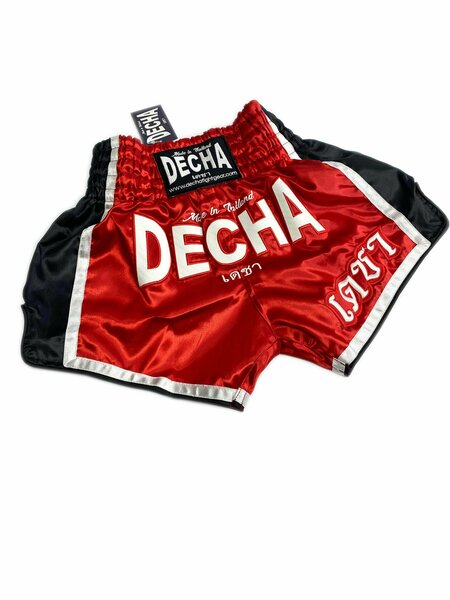 Компания Decha Fight Gear работает на рынки экипировки с 2015 года. Производят товар высшего уровня и каждый товар проверяется в ручную. Материал для пошива Сатин (Быстросохнущие). Шорты для детей до 30 кг.