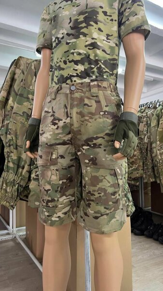 Укороченные тактические брюки необходимы в условиях жаркого климата. Отлично подойдут для ношения в не кондиционируемом помещении и во время длительных путешествий, походов. Шорты изготовлены из прочной ткани с вплетением армированных нитей рип-стоп. Для надежной фиксации на талии притачной пояс оснащен вставкой-резинкой и петлями для поддерживания ремня. Застегиваются на пуговицу и молнию. Накладные карманы с клапанами на липучках по бокам и сзади. Два внутренних кармана с косым вхождением. Края основания подогнуты и отстрочены. Изделие не мнется, не теряет цвет. Не выгорает на солнце