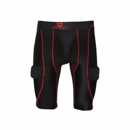 Бандаж-шорты MAD GUY Pro Compression с защитой паховой области и липучками для фиксации гамаш. Модель имеет плотную посадку и создает необходимую компрессию, в результате чего обеспечивает необходимую поддержку мышц, улучшает кровоток, снижает усталость и повышает выносливость, способствует быстрому восстановлению мышц после интенсивных физических нагрузок. При производстве применяется современная трикотажная ткань, которая придает изделию высокие эксплуатационные характеристики, прочность и износостойкость, материал хорошо держит форму и не деформируется. Не ограничивает движений, обладает высокой стойкостью к истиранию, не травмирует кожный покров, отличается хорошей воздухопроницаемостью, обеспечивая комфортный микроклимат внутри изделия. Для дополнительной вентиляции имеются вставки из сетчатого материала. Ударопрочная защитная раковина с мягкими силиконовыми краями гарантирует надежную защиту паховой области. Удобные липучки, расположенные над коленями на штанинах, позволят надежно зафиксировать гамаши.