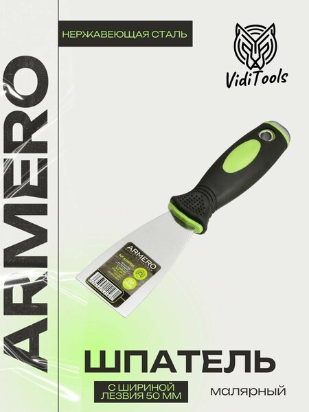 Шпатель малярный ARMERO A200/050 с шириной лезвия 50 мм используется для нанесения и распределения строительной смеси на обрабатываемую поверхность. Благодаря гибкому коническому лезвию (толщиной 0.9 мм – 0.4 мм) из нержавеющей стали инструмент отличается гибкостью и эластичностью. Шпатель гарантирует аккуратное и качественное выполнение финишных шпаклевочных работ. Двухкомпонентная эргономичная рукоятка со стальным молотком-наконечником удобно лежит в руке, обеспечивая крепкий захват.