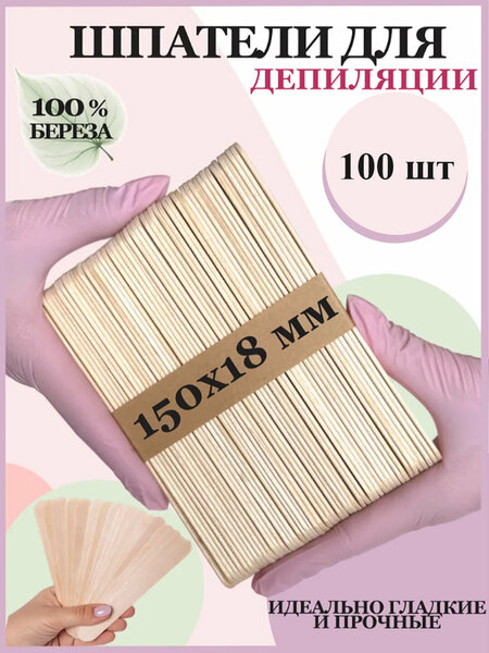Шпатель для депиляции – небольшая плоская пластина с закругленными краями. Этот универсальный инструмент обеспечивает точность и ровное нанесение косметических средств. Шпательная техника используется профессиональными мастерами в салонах красоты, и доступна для проведения эпиляции дома. Шпатели широкие изготовлены из натуральной древесины березы и имеют шлифованную поверхность. Размеры расходника 140х17х1,8 мм. Идеально подходит для удаления волос на ногах и теле. Также в зоне подмышек и интимных зонах бикини. Деревянные палочки ровные, прочные, гладкие и без зазубрин, абсолютно безопасны. Аксессуар удобно держать в руке. С помощью него легко доставать из баночки сахарную пасту любой плотности при шугаринге или растапливать в воскоплаве теплый или горячий воск при ваксинге. Аппликатор не ломается и не царапает кожу во время нанесения средств. Важно помнить, что одноразовые палочки по уходу за кожей в гигиенических целях можно использовать только один раз. В отличии от металлического шпателя нет необходимости беспокоиться о стерилизации инструмента после использования. В отличии от пластиковых аналогов утилизируются без вреда экологии. Помимо бритья широко используются как ложка для скраба, крема или мази. Хозяйки применяют в кулинарии как шпатель кондитерский при нанесении декора для торта. Логопеды используют шпатели логопедические для постановки звуков. Творческие люди нашли применение лопатки для работы с эпоксидной смолой и оригинальных поделок для рукоделия взрослых и детей. Удобно использовать деревянные палочки при обучении счету детей, как счетные палочки. Lash мастерам полезен шпатель при наращивании ресниц. Актуально применять деревянные палки в садоводстве, как метки для рассады с информацией о сорте, культуре, сроках посева растений и цветов.