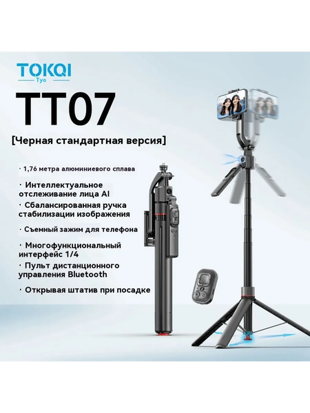 TT07 прыгающий стержень 1,73 м AI Smart Cat Съемный зажим для мобильного телефона 1/4 Интерфейс Баланс сотрясения ручка магнитного всасывания bluetooth пульт дистанционного управления Этот прыгающий стержень и стреляющий артефакт-это интеллектуальный инструмент, предназначенный для пользователей, которые любят снимать. Используя технологию отслеживания лица AI, он может автоматически распознавать и блокировать объекты, чтобы изображение всегда было стабильным и четким. Вращающийся дизайн на 360 градусов, легко захватывает каждый замечательный момент. С функцией штатива он обеспечивает надежную поддержку, подходящую для различных сцен, таких как путешествия на свежем воздухе, прямая трансляция и создание короткого видео. Легкий и портативный, простой в эксплуатации, является идеальным выбором для улучшения опыта съемки.
