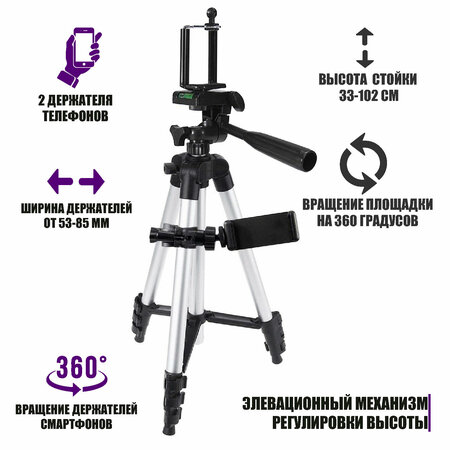 Штатив Tripod 3110-2DT с 2 держателями для съемки смартфоном