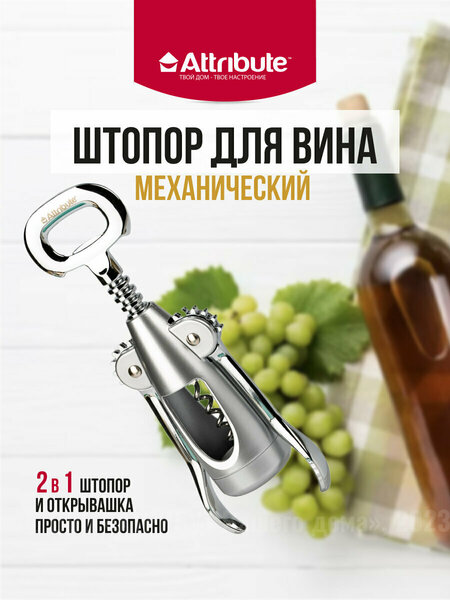 Штопор для вина механический 2 в 1: штопор + открывашка "MERLOT" от Attribute - это незаменимый помощник для любителей вина. Особенностью штопора является его двухрычажная конструкция, которая позволяет откупоривать любую бутылку с вином без приложения особых усилий. Это значительно упрощает процесс открытия бутылок и делает его более комфортным. Штопор изготовлен из нержавеющей стали и прочного пластика, что гарантирует его долговечность и надежность в использовании. Материал устойчив к коррозии и механическим повреждениям, что обеспечивает долгий срок службы изделия. Длина штопора составляет 23 см, что делает его удобным для хранения и транспортировки. Серебристый цвет и оригинальный дизайн штопора MERLOT от Attribute подчеркнет ваш стиль и станет отличным дополнением к вашей коллекции аксессуаров для вина. В комплекте с штопором идет открывашка, что позволяет не только откупоривать бутылки, но и открывать банки и другие емкости. Выбирая штопор для вина механический 2 в 1: штопор + открывашка "MERLOT" от Attribute, вы получаете надежный и удобный инструмент для открытия бутылок с вином, который станет незаменимым помощником на вашей кухне или в баре.