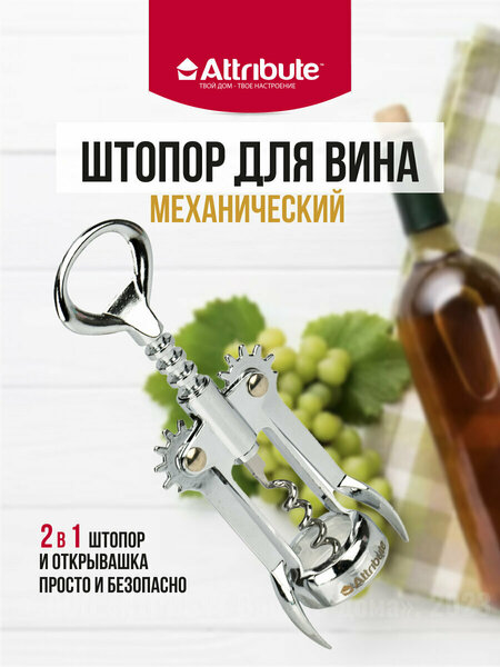 Штопор для вина механический "VINUM Chrome" от Attribute Gadget - это высококачественный инструмент, который станет незаменимым помощником на вашей кухне. Материал и покрытие: Штопор изготовлен из нержавеющей стали с хромированным покрытием, что обеспечивает его долговечность и устойчивость к коррозии. Дизайн и функциональность: Серебристый цвет штопора придает ему элегантный и современный вид, а двухрычажная конструкция обеспечивает удобство и простоту использования. В комплекте поставляется один штопор, что делает его отличным выбором для тех, кто ищет надежный и практичный инструмент для своих нужд. Выбирая штопор для вина механический "VINUM Chrome" от Attribute Gadget, вы получаете качественный и надежный инструмент, который прослужит вам долгие годы и станет незаменимым помощником на вашей кухне.