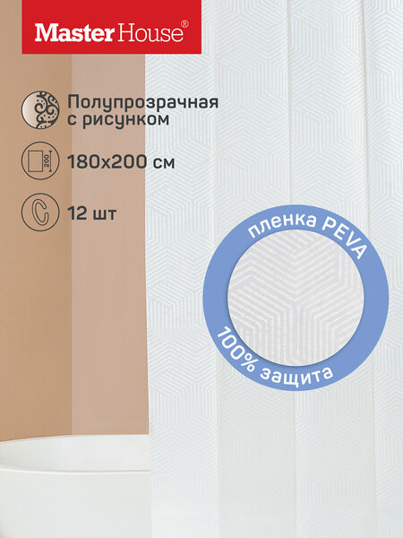 Штора для ванной Master House модель Айс пэва пленка, 180х200см, длинная, водонепроницаемая, с кольцами