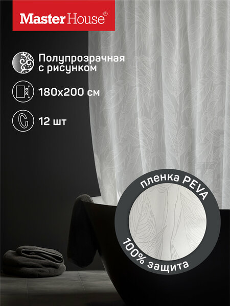 Штора для ванной Master House модель Бенджамина пэва пленка 180х200 см длинная, водонепроницаемая, 12 колец