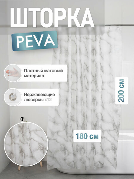 Штора для ванной PEVA 200х180 см: стильная защита и практичность по доступной цене.