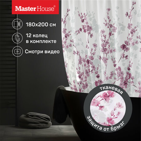 Штора для ванной Master House модель Сакура тканевая 180х200 см длинная